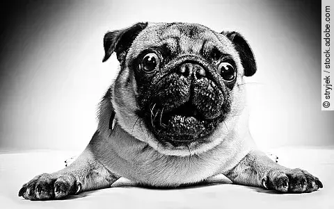 Das Gesicht der Qualzucht – der Mops und weitere Hunde mit platter Schnauze und großen runden Kulleraugen. Was diesen Züchtungen neben dem Atmen noch schwerfällt und welche weiteren Probleme sie haben, wird hier genauer beschrieben.