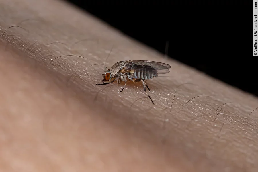 Sie sind nur 2 bis 5 mm groß, ihr Aussehen ähnelt dem harmloser Stubenfliegen, doch ihre Stiche sind sehr unangenehm: Kriebelmücken (Simuliidae). Die flugfähigen und überwiegend schwarzen Insekten gehören zu den „Poolsaugern“: Weibliche Tiere raspeln mit scharfen „Zähnchen“ die Haut des Wirts auf und nehmen anschließend den sich dort bildenden Blutstropfen zu sich. „Durch die von den Mücken in die Wunde eingetragenen gerinnungshemmenden und betäubenden Substanzen können die Stiche schwerwiegende allergische Reaktionen auslösen, oder es kann zu bakteriellen Sekundärinfektionen kommen“, erklärt Prof. Dr. Sven Klimpel vom Senckenberg Biodiversität und Klima Forschungszentrum, der Goethe-Universität Frankfurt, dem LOEWE-Zentrum für Translationale Biodiversitätsgenomik (TBG) und dem Fraunhofer IME Gießen und fährt fort: „Kriebelmücken sind zudem vektorkompetent, also in der Lage, durch ihren Stich Infektionskrankheiten auslösende Erreger zu übertragen.“ Der bekannteste durch Kriebelmücken übertragene Erreger ist der auf dem afrikanischen Kontinent heimische Nematode Onchocerca volvulus, welcher die sogenannte Onchozerkose („Flussblindheit“) auslösen kann. Nach Angaben der Weltgesundheitsorganisation erlitten durch die Krankheit weltweit bereits über 1,15 Millionen Menschen einen Sehverlust.