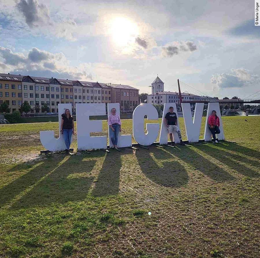 Durch Jelgava fließt der Fluss „Lielupe“ wodurch es eine kleine Insel mitten in der Stadt gibt. An einem Ende dieser Insel leben Wildpferde, die man zu Fuß besuchen kann. Nebenan ist ein Aussichtsturm, von dem aus man einen super Ausblick auf die gesamte Stadt aber auch über die Auslaufflächen der Wildpferde bekommt. In der Mitte der Insel befindet sich ein Palast, der Hauptsitz der Uni. Dort finden alle administrativen Sachen statt, aber man hat auch in den ersten zwei Uni Jahren ziemlich viel Unterricht im Palast. Der Rest der Insel besteht aus Stränden, Volleyballfeldern, Outdoor-Workout-Plätzen, einem Sandskulpturen-Bereich und einer großen Konzerthalle. Oft werden dort auch verschiedene Festlichkeiten abgehalten, wie zum Beispiel das Eisskulpturen-Festival im Winter oder das Milch- und Honig-Fest im Sommer.