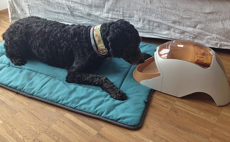 Unter Zuhilfenahme technischer Geräte, mit denen man den Hund durch Fernsteuerung an einem bestimmten Ort belohnen kann oder die den Hund auch in der Abwesenheit des Tierhalters mittels Zeitschaltuhr mit Snacks versorgen, kann das Alleinsein oftmals besonders leicht positiv aufgebaut werden. Eine der besten Maschinen dieser Art ist unter dem Namen „Treat & Train Dog Training System“ im Handel (Abb. 2).