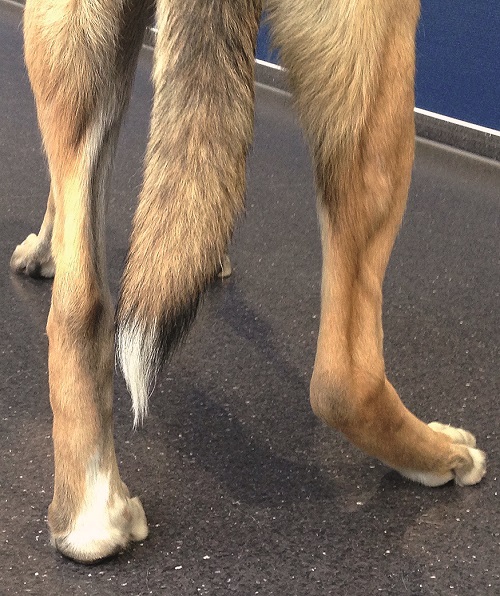 Da es sich um eine chronische Erkrankung handelt, weisen diese Hunde eine längere Lahmheitsvorgeschichte mit Schwellung im Bereich des Ansatzes der Sehne am Calcaneus auf. In einer Studie dazu konnte auf mikroskopisch-biomechanischer Ebene gezeigt werden, dass die Sehnen des M. gastrocnemius und des M. flexor digitorum superficialis Prädilektionsstellen für degenerativen Verschleiß aufweisen.