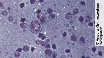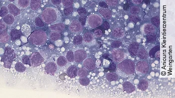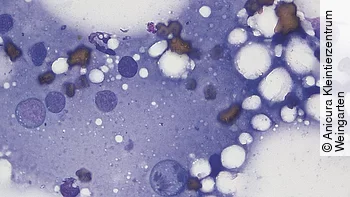 In allen Aspiraten wurden vermehrt mitotische Figuren festgestellt. Diese neoplastischen Lymphozyten wurden als deutliche Hinweise auf eine ausgeprägte leukämische Phase eines hochgradigen Lymphoms interpretiert. Diese Interpretation und der endgültige Befund wurden zusätzlich von einem externen Fachlabor bestätigt.