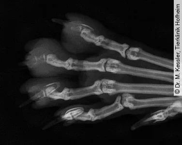 Wird eine Katze mit einer Lahmheit in Verbindung mit Husten, Lethargie oder Dyspnoe in der Klinik vorgestellt, sollte das Lungen-Zehen-Syndrom auf der Liste der möglichen Differenzialdiagnosen stehen. Doch auch bei einer reinen Lahmheit ohne respiratorische Symptome sollte die Lunge im Hinterkopf bleiben und nach Möglichkeit ein Röntgenbild des Thorax angefertigt werden.
