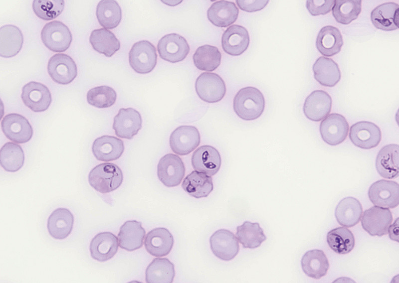 Je nach Babesien-Art können Unterschiede in den Laborwerten beobachtet werden [64]. Im Zuge der Parasitenproliferation wird SPA (Soluble Parasite Antigen) gebildet. SPA wirkt auf unterschiedliche Weise schädigend, indem es in die Gerinnungskaskade eingreift und zur Freisetzung von vasoaktiven Mediatoren oder Autoagglutination von Erythrozyten führt. Vasodilatation, Hypotension und Sequestration (Sludge-Phänomen) sind die Folgen. Zu den typischen Laborbefunden zählen insbesondere Anämien. Diese entstehen durch eine Kombination von intravasaler und extravasaler Hämolyse, die durch parasitär-bedingte Hämoglobin-Schädigung, erhöhte osmotische Fragilität der Erythrozyten und Aktivierung sekundärer immun-mediierter Prozesse ausgelöst wird [56]. Charakteristisch ist die Entstehung einer hämolytischen Anämie, die initial aregenerativ, normozytär und normochrom und später regenerativ, makrozytär und hypochrom verläuft.