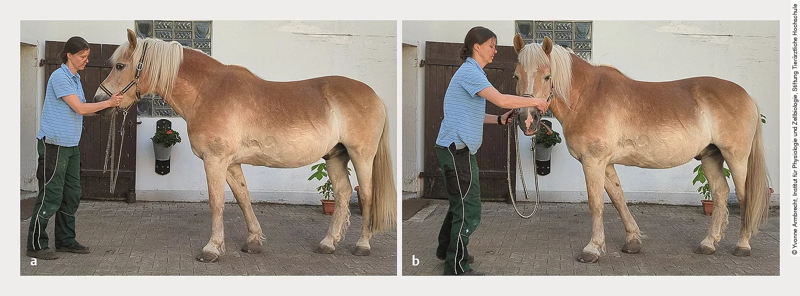 - Die zeitliche Verlängerung der Fixierung wird vom Pferd geduldet.