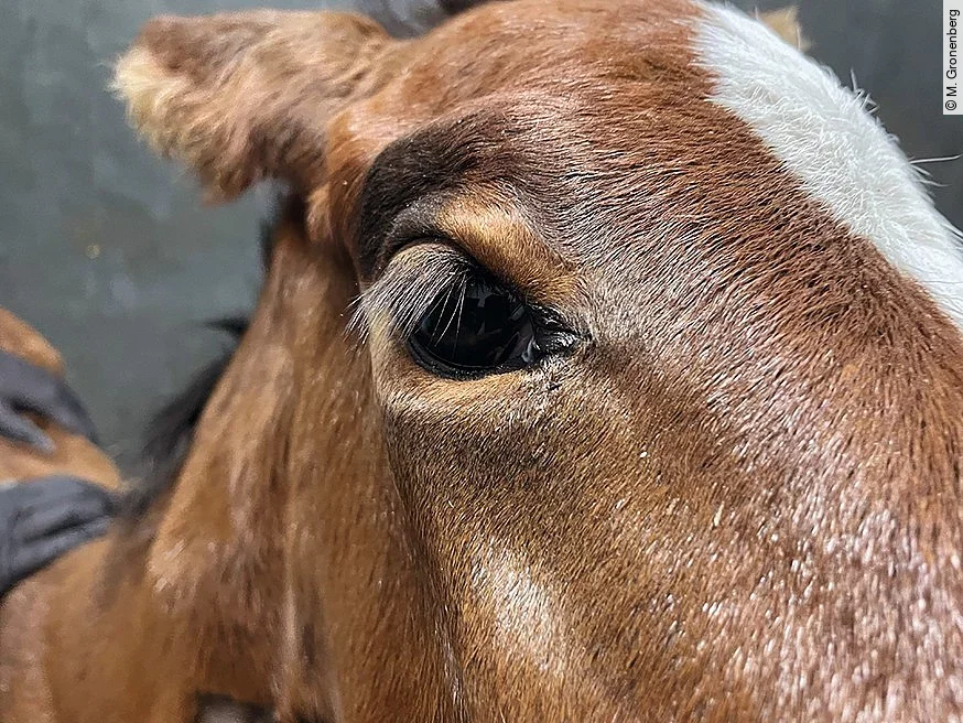 Die Schleimhäute sollten innerhalb kurzer Zeit rosig erscheinen; unmittelbar nach der Geburt sind sie häufig gerötet, was sich jedoch rasch normalisieren sollte. Der Hautturgor – am besten durch sanftes Ziehen einer Hautfalte am Oberlid überprüft – sowie die Augentopografie liefern wichtige Hinweise auf den Hydratationsstatus (Abb. 2).
