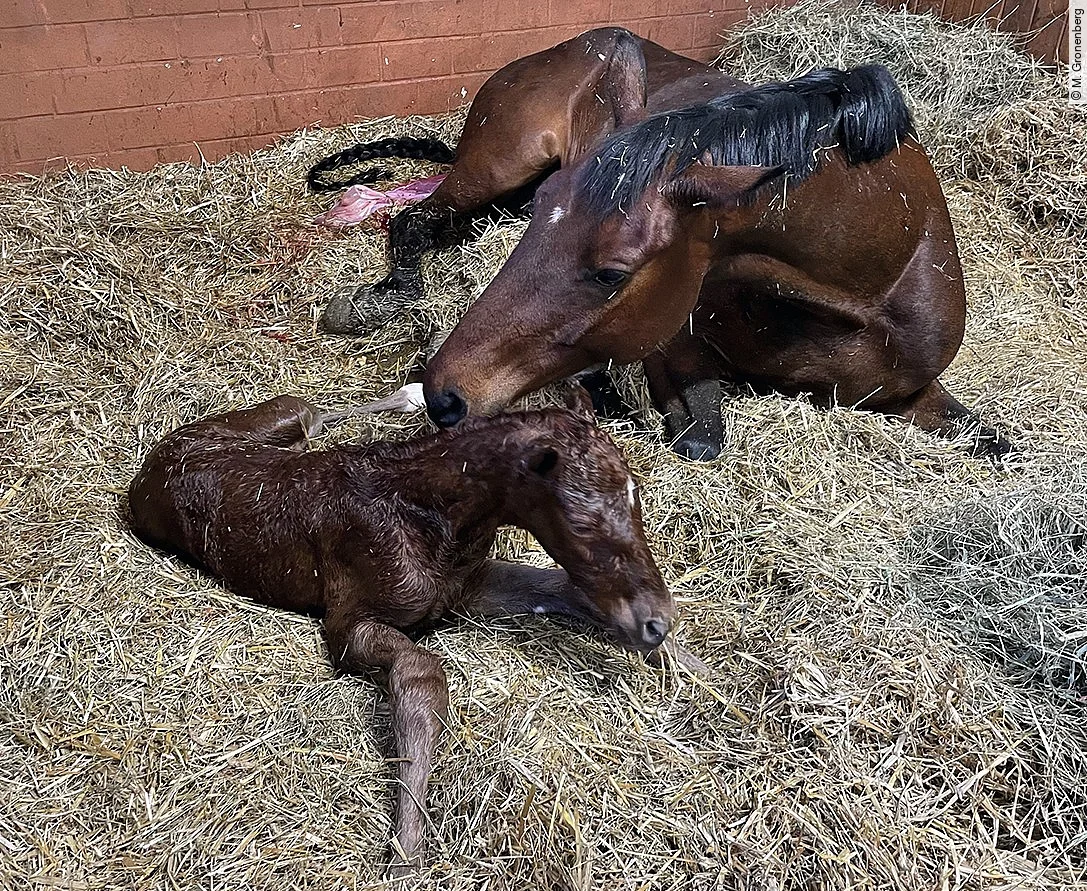 Eine durchdachte Zuchtplanung mit frühzeitiger gynäkologischer Untersuchung, gezielter Impfung und Entwurmung der Stute sowie der sichere Ausschluss einer Zwillingsträchtigkeit bilden die Grundlage für eine komplikationsfreie Geburt und ein gesundes, vitales Fohlen. Die Erstversorgung eines neugeborenen Fohlens zählt dabei zu den wichtigsten Aufgaben in der Pferdepraxis – sie erfordert strukturiertes Vorgehen, genaue Beobachtung und sicheres Handeln. Neben medizinischem Fachwissen spielen auch Erfahrung und ein geschulter Blick für klinische Details eine zentrale Rolle.