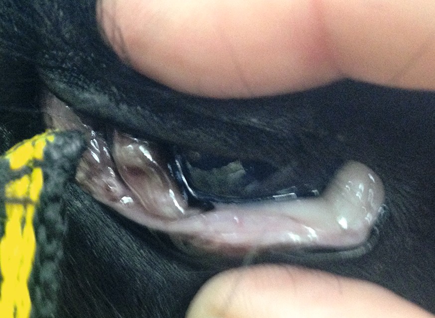 Zahnwurzelabszesse treten oftmals während des Zahnwechsels auf. Die Backenzähne sind dabei wesentlich häufiger als die Schneide-, oder Eckzähne betroffen. Ebenso findet man dieses Krankheitsbild vorwiegend im Unterkiefer. Klinisch zeigen diese Tiere palpierbare Umfangsvermehrungen im betroffenen Kieferbereich. Eine Fistelbildung mit Austritt von Eiter ist dabei nicht selten (Abb. 6).