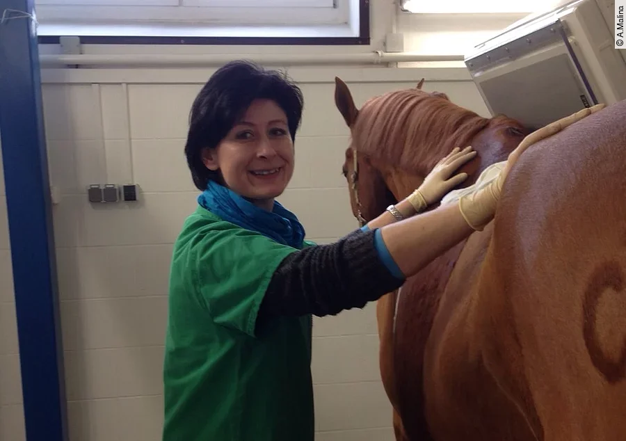 Zu Anjas Aufgaben im Klinikalltag gehören umfangreiche Verwaltungstätigkeiten wie z. B. Terminvereinbarungen, Rechnungsbearbeitung und Bearbeitung diagnostisch relevanter Bildgebung der Patienten. Weiterhin ist sie verantwortlich für die Pflege und Einsatzbereitschaft verschiedenster medizinischer Untersuchungsgeräte. Zusätzlich wird sie je nach Arbeitsanfall in der Röntgen- oder Behandlungsassistenz eingesetzt. Ein weiteres, interessantes Arbeitsgebiet umfasst ihre Arbeit in der physiotherapeutischen Rehabilitation der Patienten-Pferde, die sie auf Anweisung der Tierärzte und auf Besitzerwunsch ausübt. Zu dieser besonderen Tätigkeit hat sie bereits 2 physiotherapeutische Fallbeschreibungen in der Zeitschrift hundkatzepferd veröffentlicht.